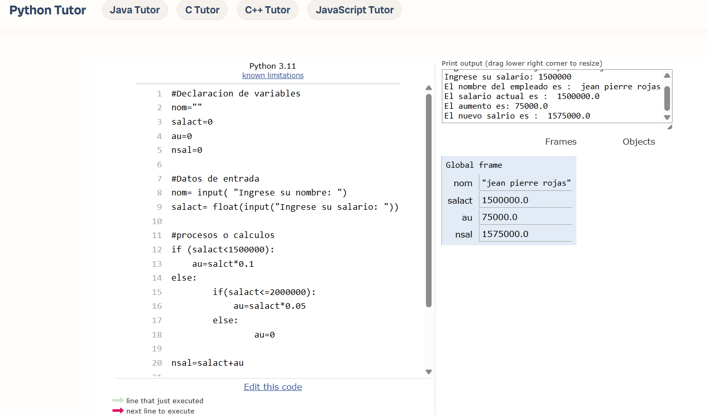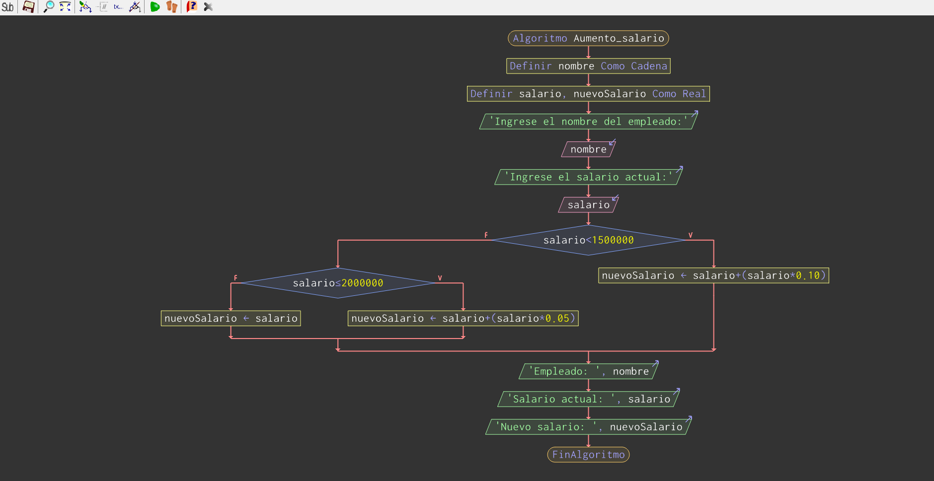 Si el salario es menor que 1.500.000 aumentarle el 10 %; si no preguntar si el salario es menor o igual a 2.00.000, si es verdad aumentar el 5% de lo contrario no hacer aumento.